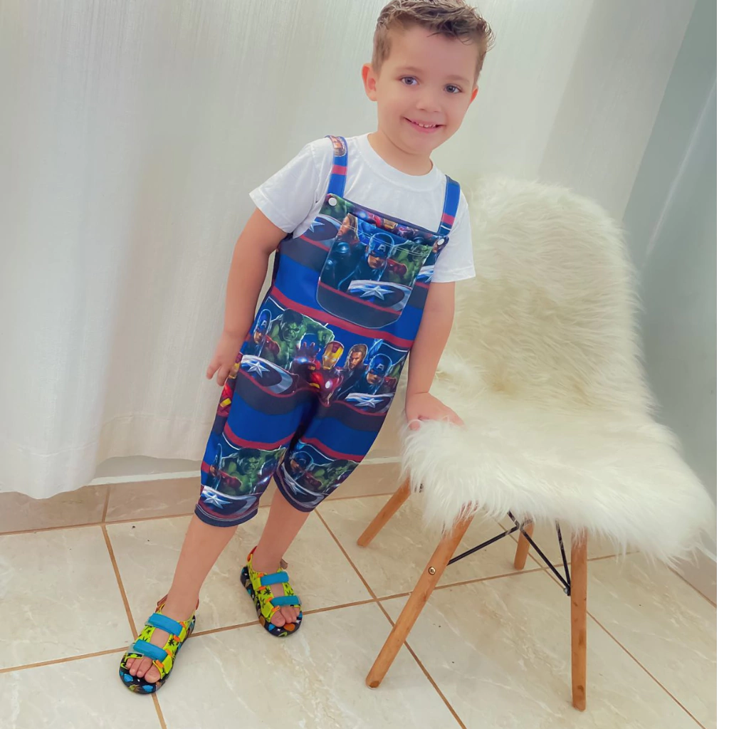 Jardineira curta ideal para o verão, vestem desde bebês RN até tamanho 16.